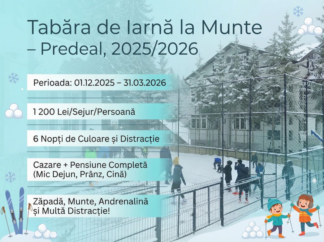 Pachet Turistic Standard: 1 200 Lei/sejur – tabără/persoană*