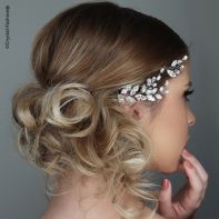 Cristal navette cu adăncime în căsuță metalică placată cu argint pe sărma argintie, pe agrafă.